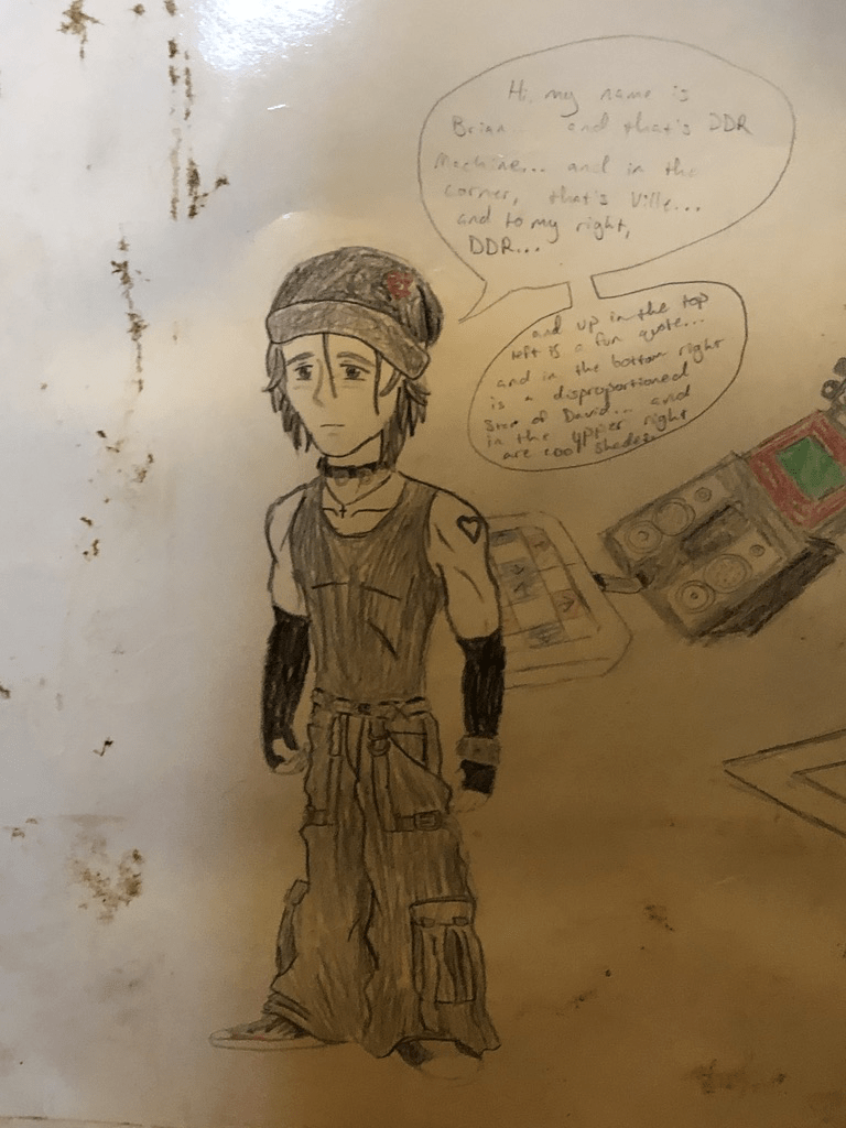 Continue reading “Brian’s Exploratory Christmas Endeavor ’19: It’s a Wonderful Life”In this, which I consider to be an absolutely delightful bonus episode, I agreed to share this awful picture from my high school art class portfolio, where we were asked to draw self-portraits and to have them introduce us. So. Here it fucking is.